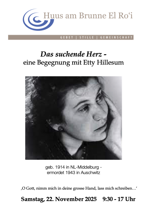 Oasentag zu Etty Hilesum am Samstag 22. November mit Madeleine Monsch